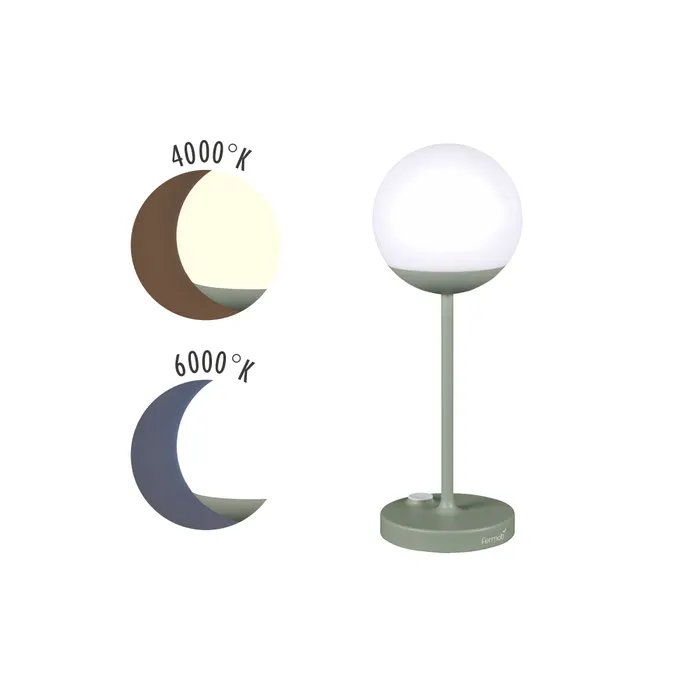 Le produit Lampe Mooon! H.40 | Lampe d'extérieur sans fil du fabricant Fermob classé dans la catégorie Electricité - Eclairage > Appareils d'éclairage intérieur > Lampes de bureaux et lampadaires est référencé dans la Matériauthèque digitale Materiaux.archi.