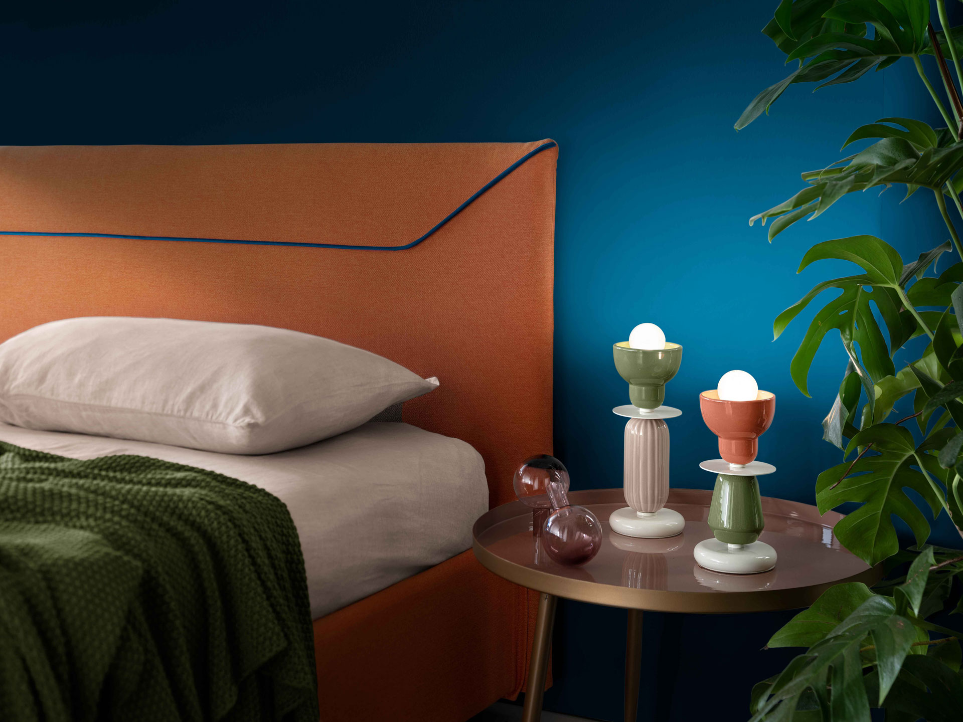 Le produit BERIMBAU, LAMPE DE TABLE de FERROLUCE existe dans les coloris : Rouge Bleu Vert Brun .