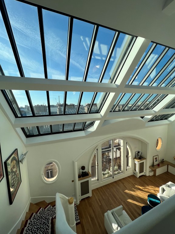 L’intégration d’une verrière de toiture permet d’apporter un maximum de lumière dans une pièce grâce à la finesse des profilés aciers.