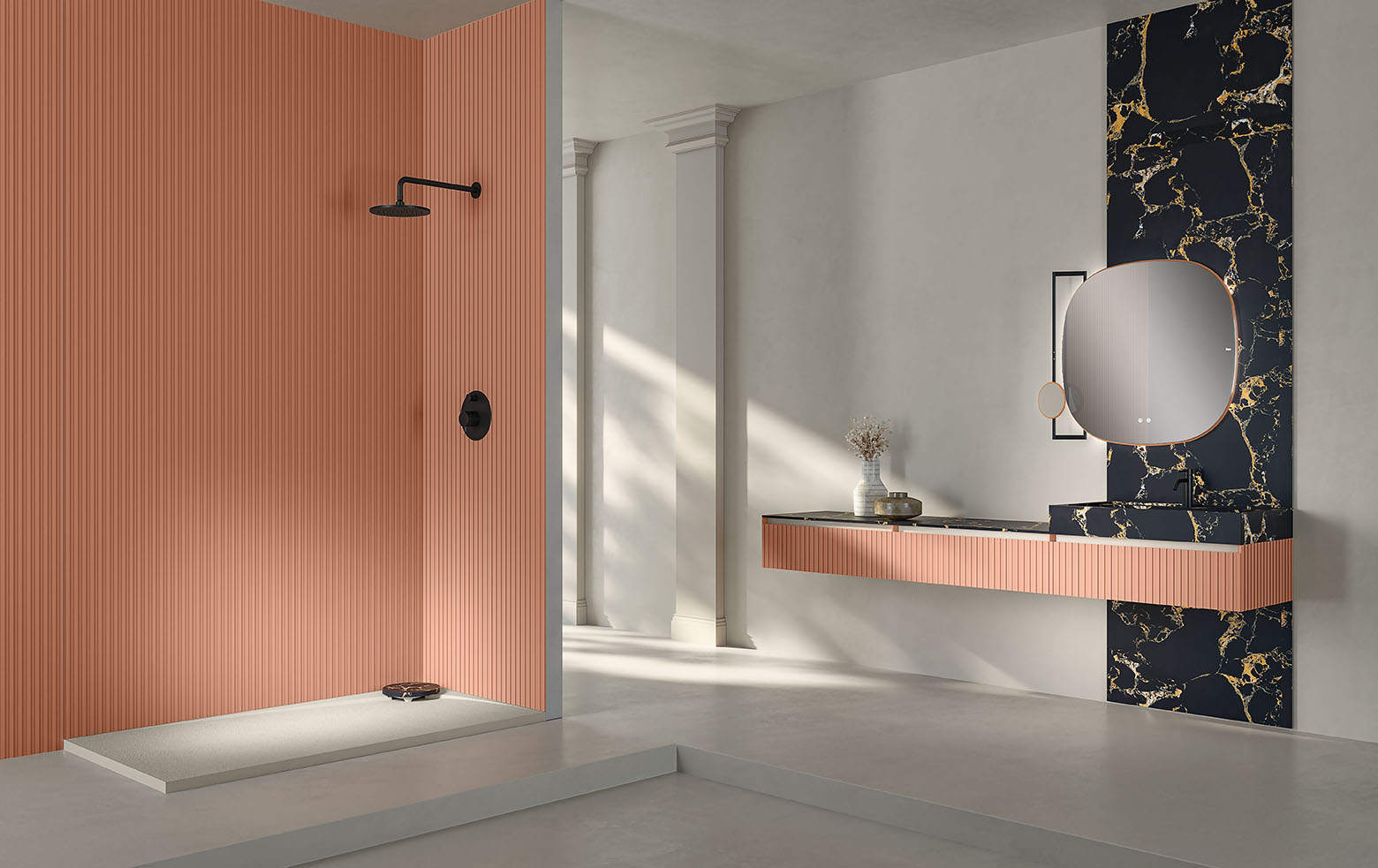 La nouvelle collection semi-modulaire Rok change la vision des meubles de salle de bains et offre un design innovant, un ensemble de lignes droites et un style architectural unique. Sans poignée, ou avec poignée personnalisable, suspendu ,avec ou sans pieds, et avec de nouvelles couleurs et textures exclusives. Cette nouvelle collection de lignes simples, modernes et élégantes offre une grande polyvalence dans les formes et les finitions avec des options de réalisation et de personnalisation infinies.