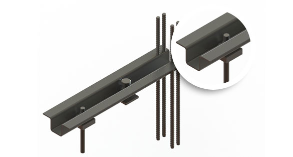 Le système de fixations d’allèges « omegas » est utilisé pour la fixation de panneaux en acrotère sur des dalles ou des poutres. Deux ancrages uniques par panneau reprennent les moments de flexion comme les forces tangentielles et normales. Les panneaux sont livrés sur chantier munis de leurs ancres encastrées. Un boulon distanceur permet l’ajustement vertical.