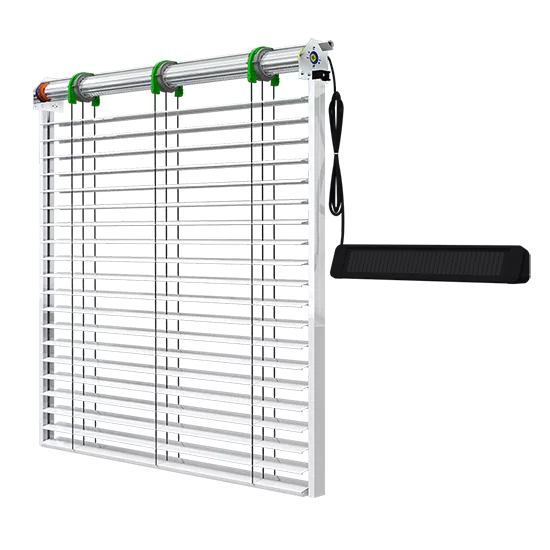 Le panneau solaire FLIP intégrée à ce BSO lui confère une parfaite autonomie énergétique. Le panneau solaire capte l’énergie lumineuse, l’envoie vers la batterie qui la stocke et la redistribue pour alimenter le moteur. Aucun besoin de se raccorder au réseau électrique du bâtiment. Cette motorisation radio est compatible avec la domotique.