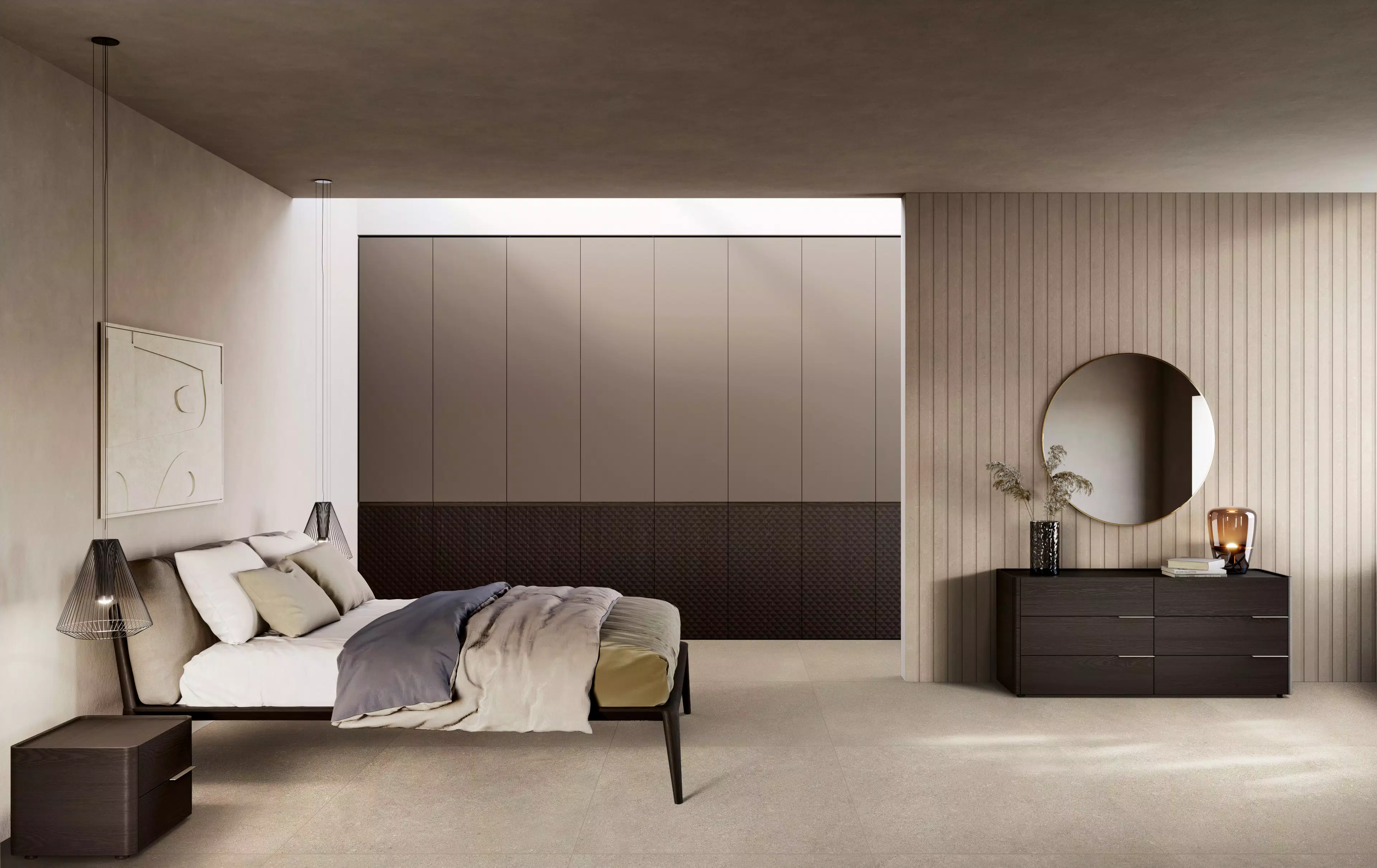 Authentic Luxe se prête à la création d'environnements exclusifs, mais sans ostentation, capables de transmettre bien-être et tranquillité sans excès. Cette approche se distingue par la combinaison de matériaux de haute qualité, un design minimal mais sophistiqué, une gamme de couleurs plus neutres mais rehaussée d'accents de couleur, ajoutant profondeur et raffinement aux espaces sans compromettre la polyvalence stylistique offerte par toute la ligne.