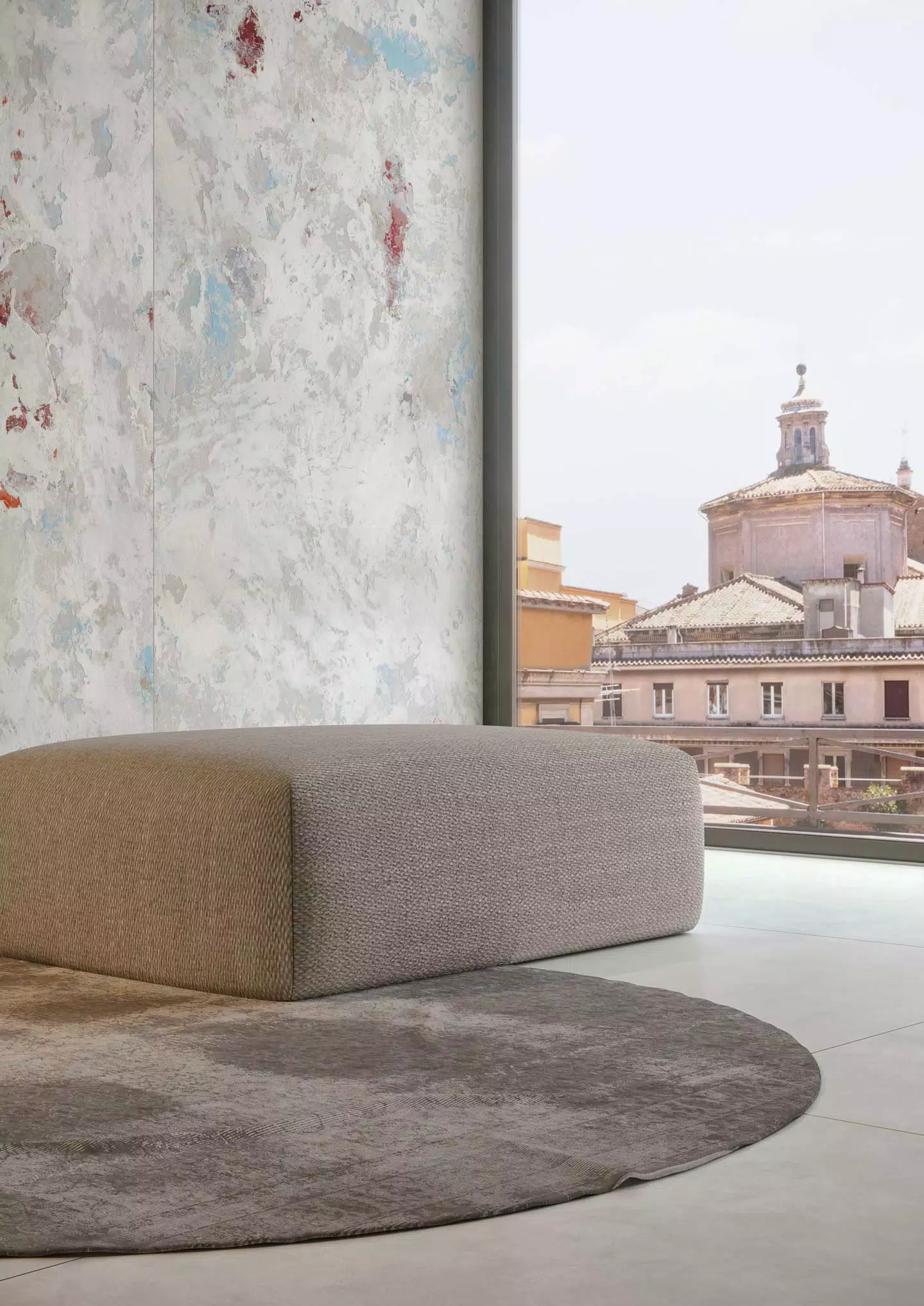 Dans la collection "Archeologie", les surfaces en grès cérame prennent la consistance d'une nouvelle et extraordinaire portion d'espace, sur laquelle l'auteur transfère et dépose quelques-uns des traits saillants de sa poétique personnelle d'artiste, formant ainsi une proposition de revêtement contemporain qui, visuellement, ressemble à une couche colorée destinée à survivre au temps et à devenir mémoire.