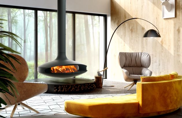 Dominique Imbert, artiste et fondateur de Focus, crée le Gyrofocus, première d’une longue série de cheminées en acier, suspendues et pivotantes à 360 degrés. Totalement disruptif, et depuis devenu l’icône de la marque, il s’inscrit parmi les légendes du design international du XXe siècle.