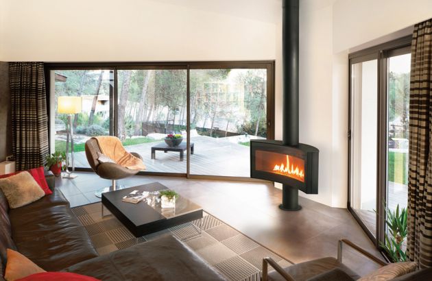 La sobriété de la forme du foyer se lie dans ce modèle à des performances thermiques exceptionnelles, respectueuses de l’environnement et des normes européennes.