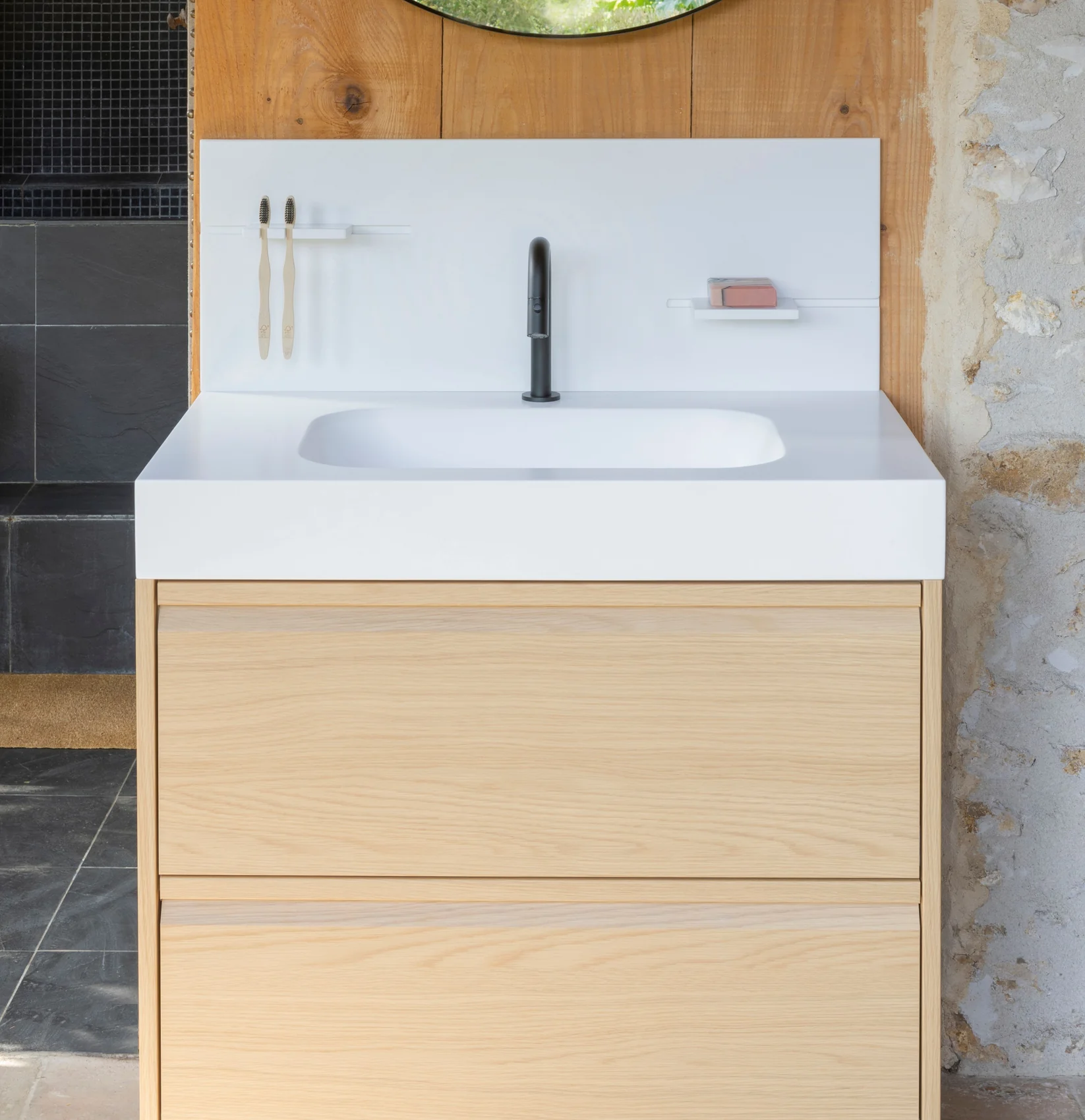 Le produit Tom du fabricant Fontaine Design classé dans la catégorie Sanitaire - Plomberie - ECS > Meubles salle de bain > Meubles lavabo, vasque contemporains est référencé dans la Matériauthèque digitale Materiaux.archi.