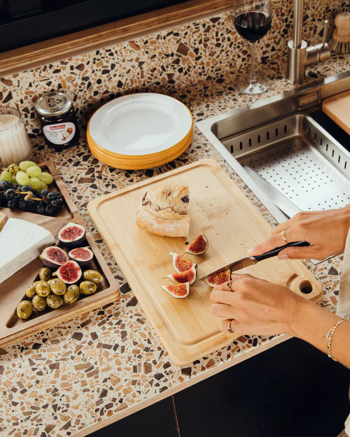 This means that the edge will need to be trimmed and finished. Factory edges are rough and can include markings from the factory such as order references, thickness references, or other writing.