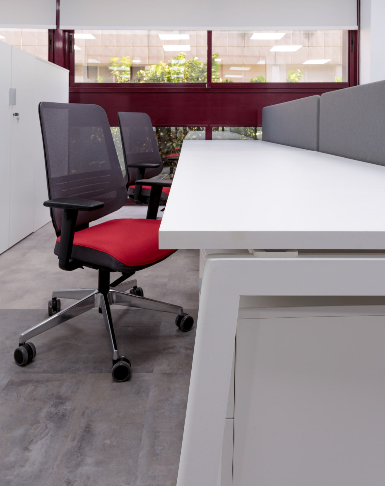 Des espaces de travail où priment les touches modernes et fonctionnelles grâce aux produits choisis, qui apportent l’image recherchée. L’esthétique du fauteuil Dot.Pro si intègre parfaitement grâce à son esthétique contemporaine, mais aussi aux matériaux qui le constituent, fonctionnels et résistants. M10, Glove, contribuent largement à la création d’ensembles équilibrés et dans l’air du temps.