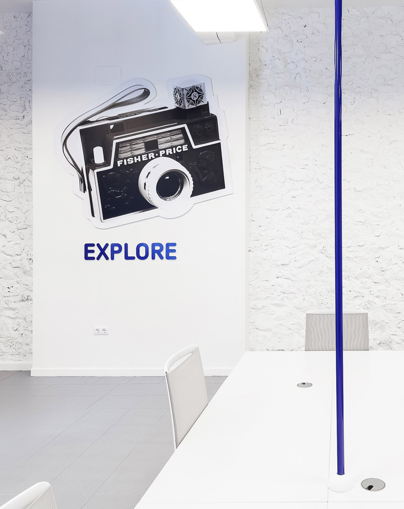 Sentis est le protagoniste dans cet environnement au graphisme futuriste, agrémenté d’images XXL en noir et blanc, comme autant d’images sorties de scanners, auxquelles on aurait ajouté des mots clefs invitant à l’action. Dans sa création d’espace, Wanna One a misé sur des matériaux tels que le formica blanc, le métal, le verre, sans oublier une touche textile.