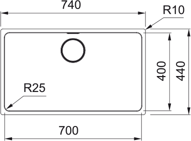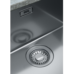 Cuve MYTHOS, MYX 110-70 Inox, sous-plan 740x440 mm. Son Inox incarne l'élégance et est facile à nettoyer. Vidage manuel, Bouton push inox, cache bonde rond inox, Trop plein discret, tous ces accessoires qui permettent une installation en toute tranquillité.