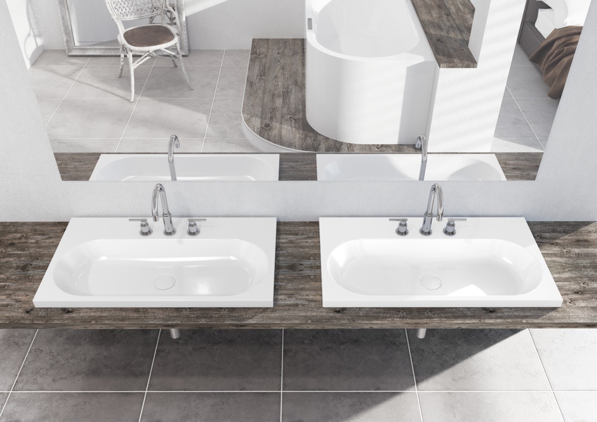 Contrepartie assortie dans la zone de lavage pour la baignoire CENTRO DUO
