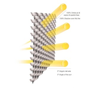 Comme le montrent les graphiques ci-dessous, l’utilisation de panneaux braise-soleils en métal déployé permet d’atteindre 100% d’ombre, en fonction du type de maillage employé.