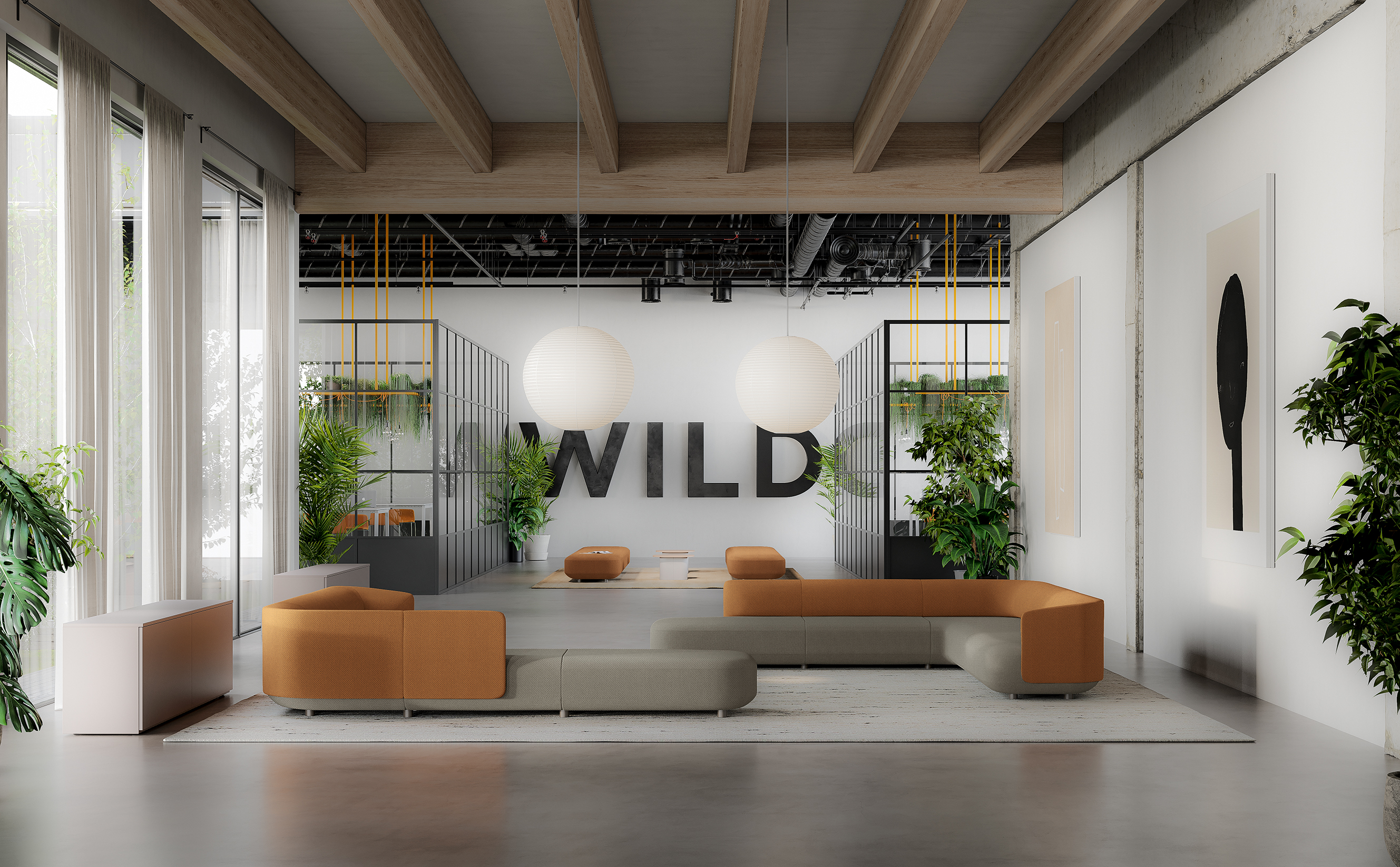 Le design captivant et contemporain s’adapte naturellement aux contextes architecturaux les plus divers. Les lignes solides et géométriques de l'assise font contrepoint à un dossier enveloppant et large aux lignes douces et moulées. La relation continue entre ces deux éléments est également soulignée par des modules terminaux ouverts, qui invitent à la convivialité et à une relation avec l'environnement, suggérant une atmosphère détendue et domestique.