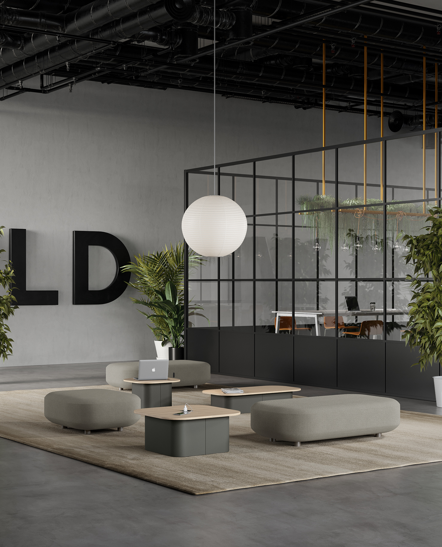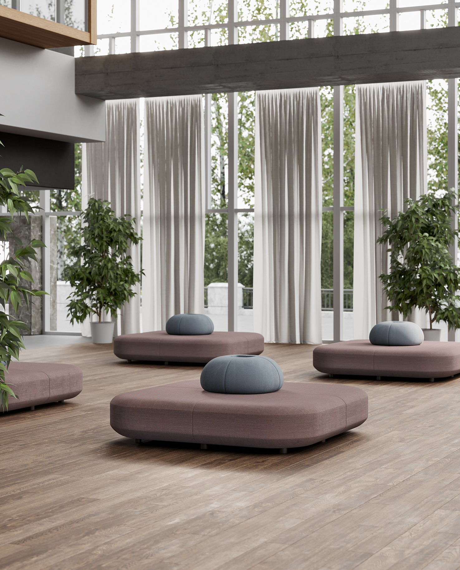 Les modules des canapés et poufs offrent, en option, la possibilité d'être commandés avec une prise USB intégrée à la structure.