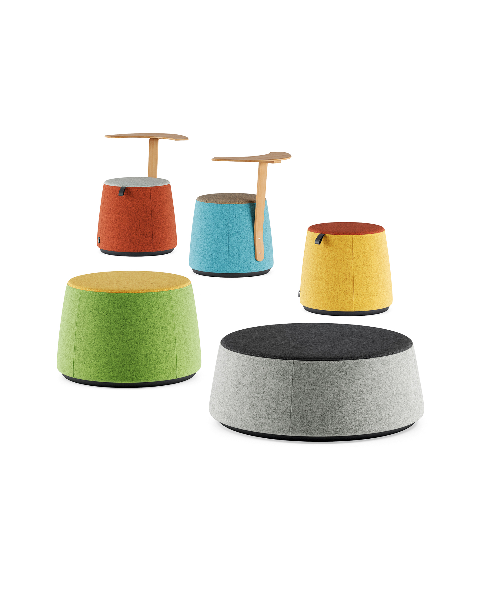 Avec C1.8, de nouvelles possibilités esthétiques s'associent à toutes les fonctions nécessaires à la formation : flexibilité pour le travail en groupe et calme pour l'étude individuelle, car on apprend mieux dans des environnements inspirants. La série comprend également un pouf intégré avec une tablette d'écriture ergonomique en contreplaqué de hêtre de 12 mm d'épaisseur qui devient une surface d'appui utile et souligne encore plus sa fonctionnalité et son caractère. La hauteur du pouf avec tablette depuis le sol est de 74 cm.