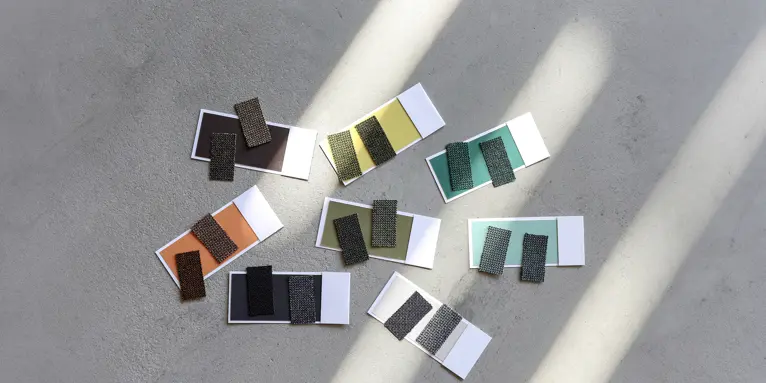Renewed Loop ne fait aucun compromis sur les performances ou l'esthétique, même s'il est fabriqué à partir de déchets textiles. Le tissu offre une esthétique raffinée et naturelle et présente une gamme étonnante de 47 teintes magnifiques, allant du vert et du bleu au rouge, à l'orange et au marron. Chaque couleur est vive dans son essence, mais subtilement atténuée par la présence de fils recyclés noirs, qui ajoutent une dimension supplémentaire à l'expression des couleurs.