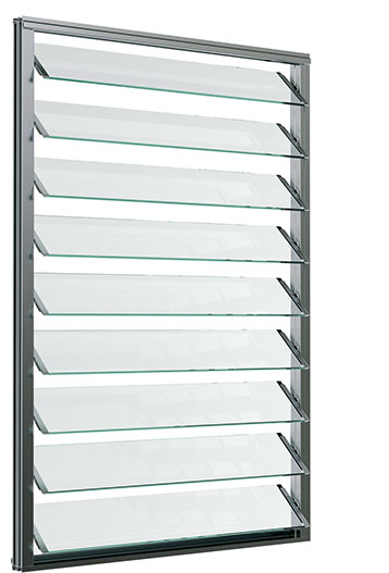 The classic Louvre Window! Available with 152 mm blades and 6 mm (1/4 Inch) glazing, also available in single part delivery for assembly on site - standard dimensions lead to low cost. Louvre blades are overlapping, also available with ellipsoid aluminium profiles for use as solar shading system.