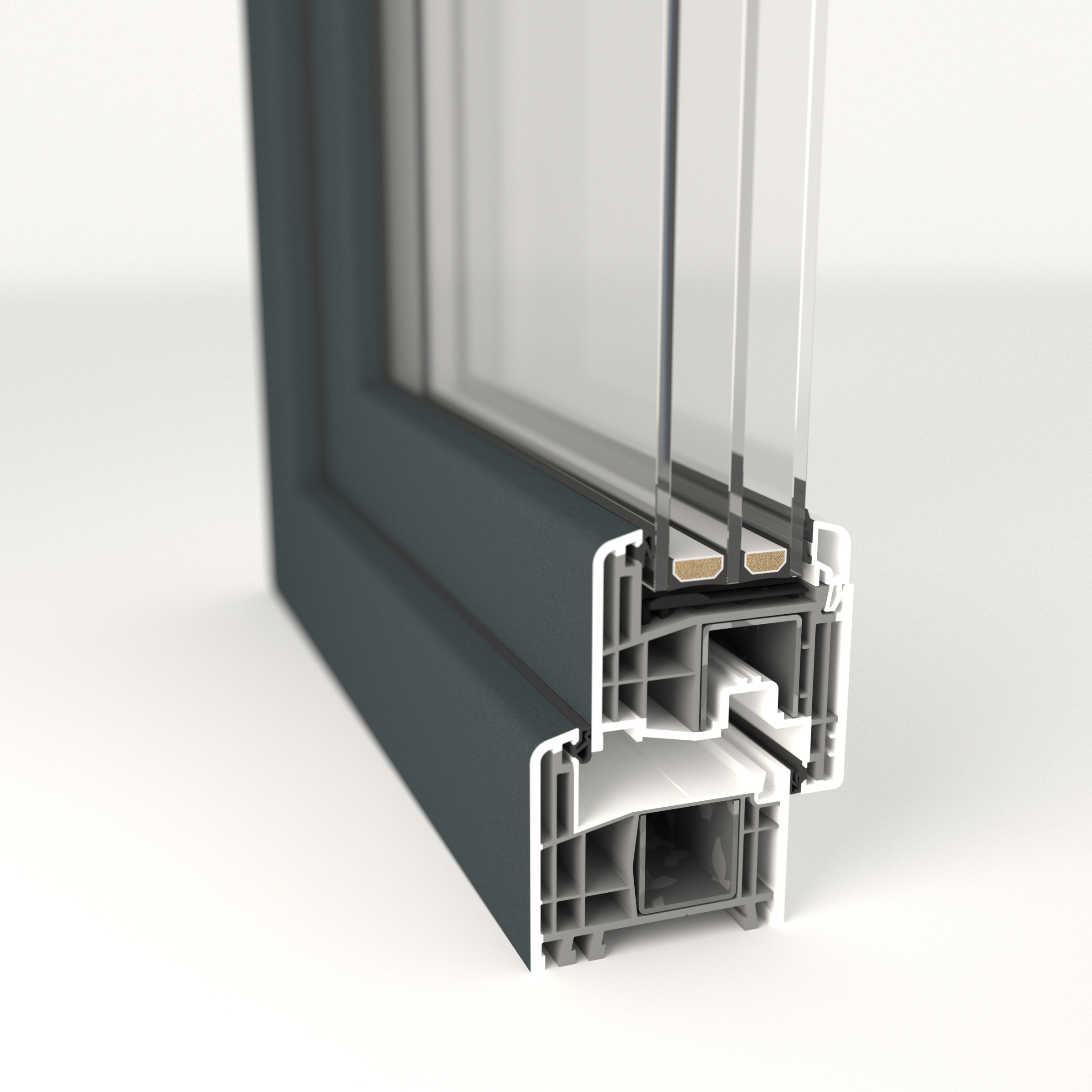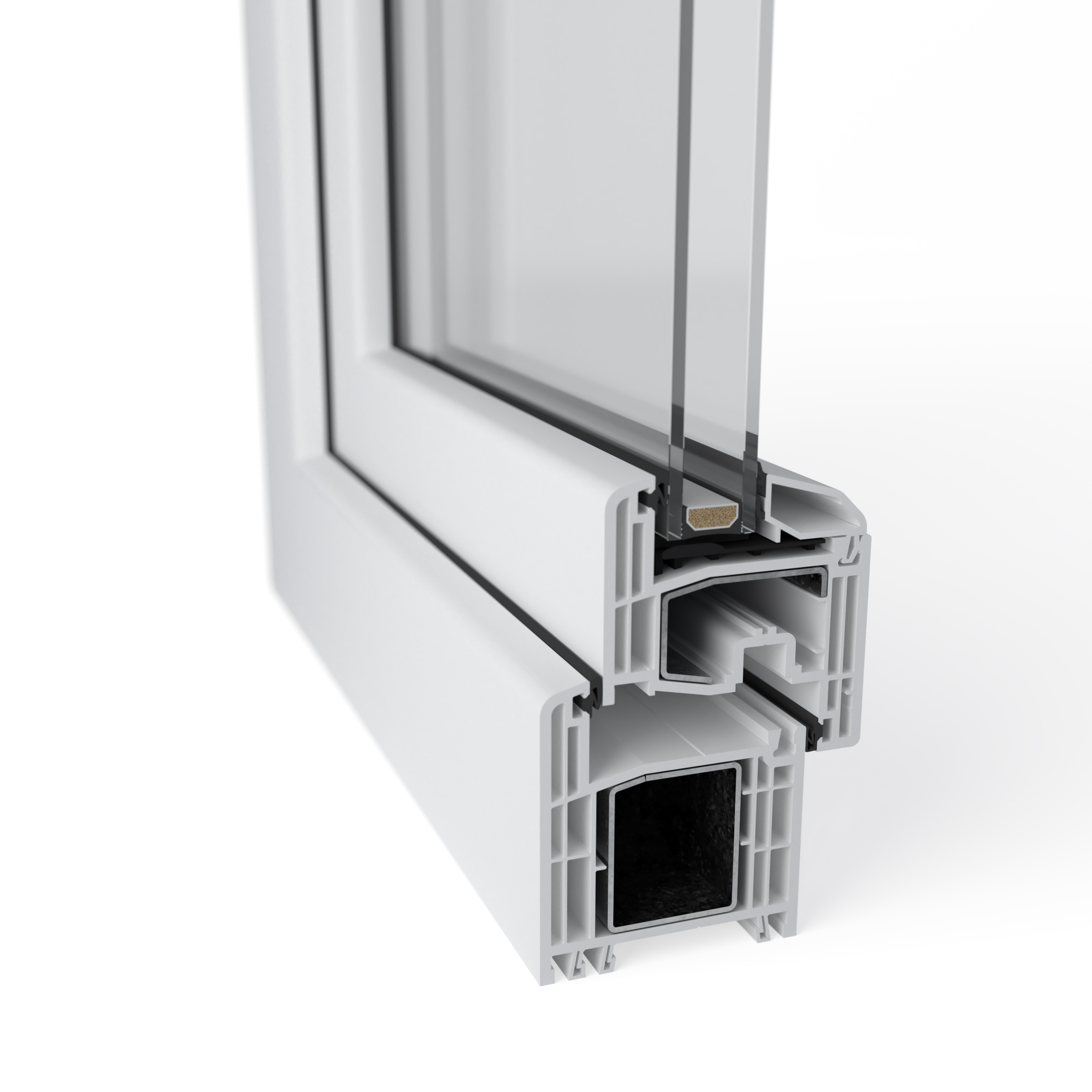 Lors du développement de la gamme S 8000, une attention toute particulière a été accordée à la stabilité du profilé. D'où l'importance des dimensions de la chambre principale pour l'intégration du renfort acier. Le résultat ? Une résistance en flexion très élevée du renfort standard, qui confère à son tour une bonne stabilité au profilé. Vous pouvez donc voir les choses en grand !