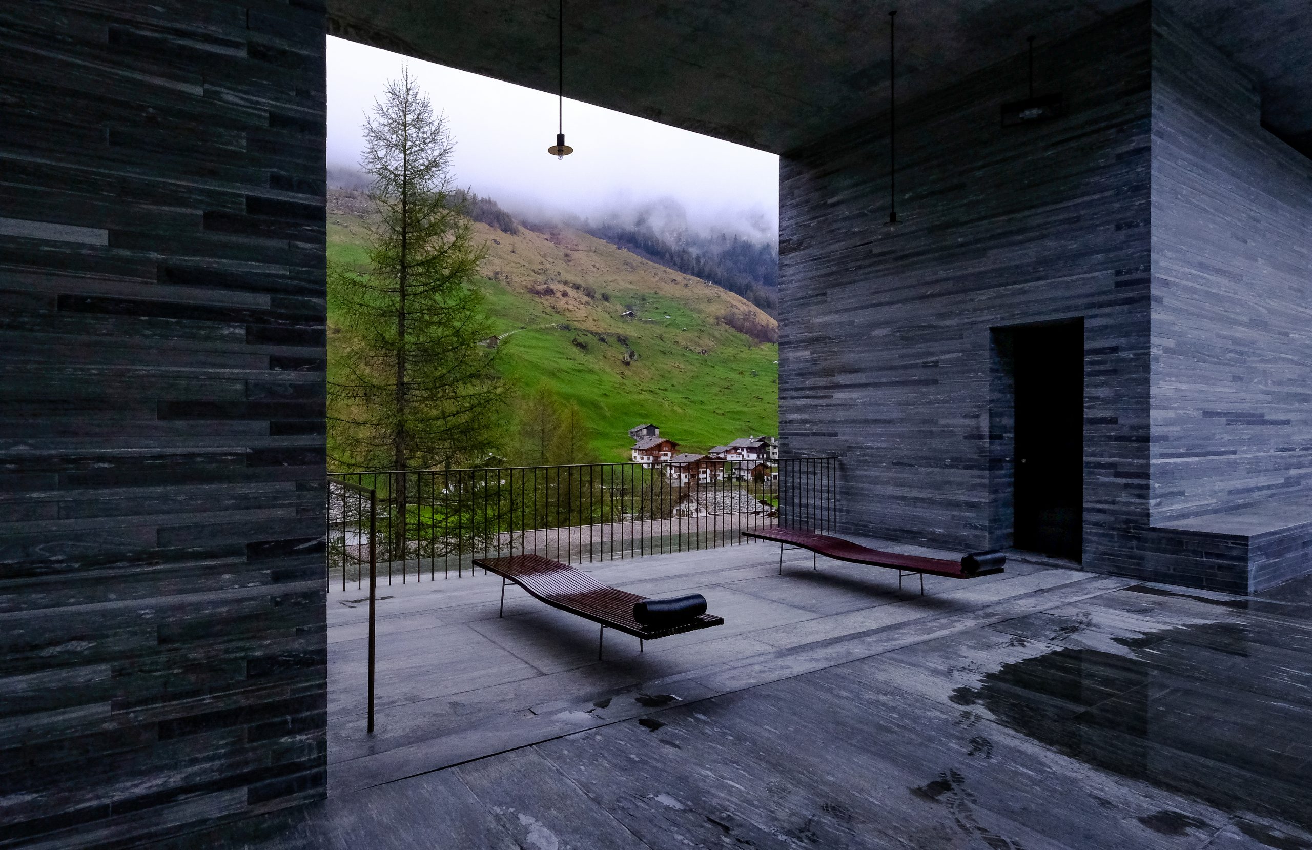 la Pierre de Vals est un schiste à grains serrés, d’aspect rubané et composé de couches légèrement bleuâtres parfois verdâtres alternées de strates de quartz gris clair à blanc.