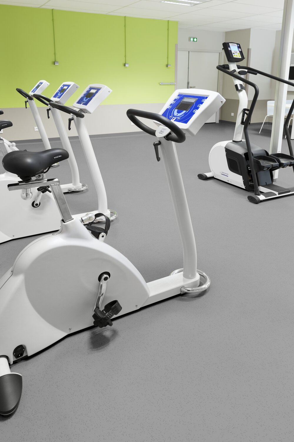 Le revêtement de sol dispose d’une mousse très haute densité et il est renforcé par une double grille de verre. Il offre une très bonne résistance au poinçonnement statique (0,07 mm) et dynamique (roulement des charges lourdes).
