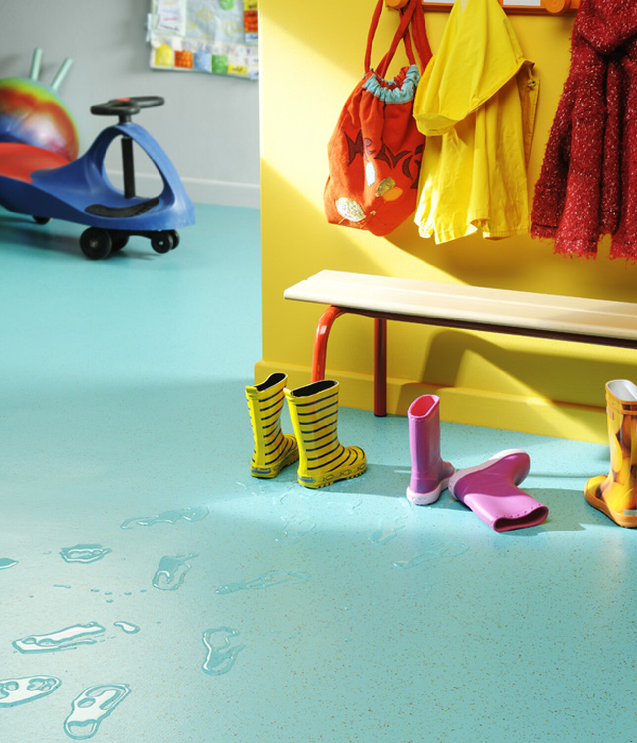 Le revêtement de sol TARALAY PREMIUM ACOUSTIC 43 est renforcé par une double armature de verre. Il offre une excellente résistance au poinçonnement statique (0,06 mm) et dynamique (roulement). Il apporte une isolation phonique de 17 dB (16 db pour le décor Metallica seulement) grâce à sa mousse très haute densité (THD) en envers.