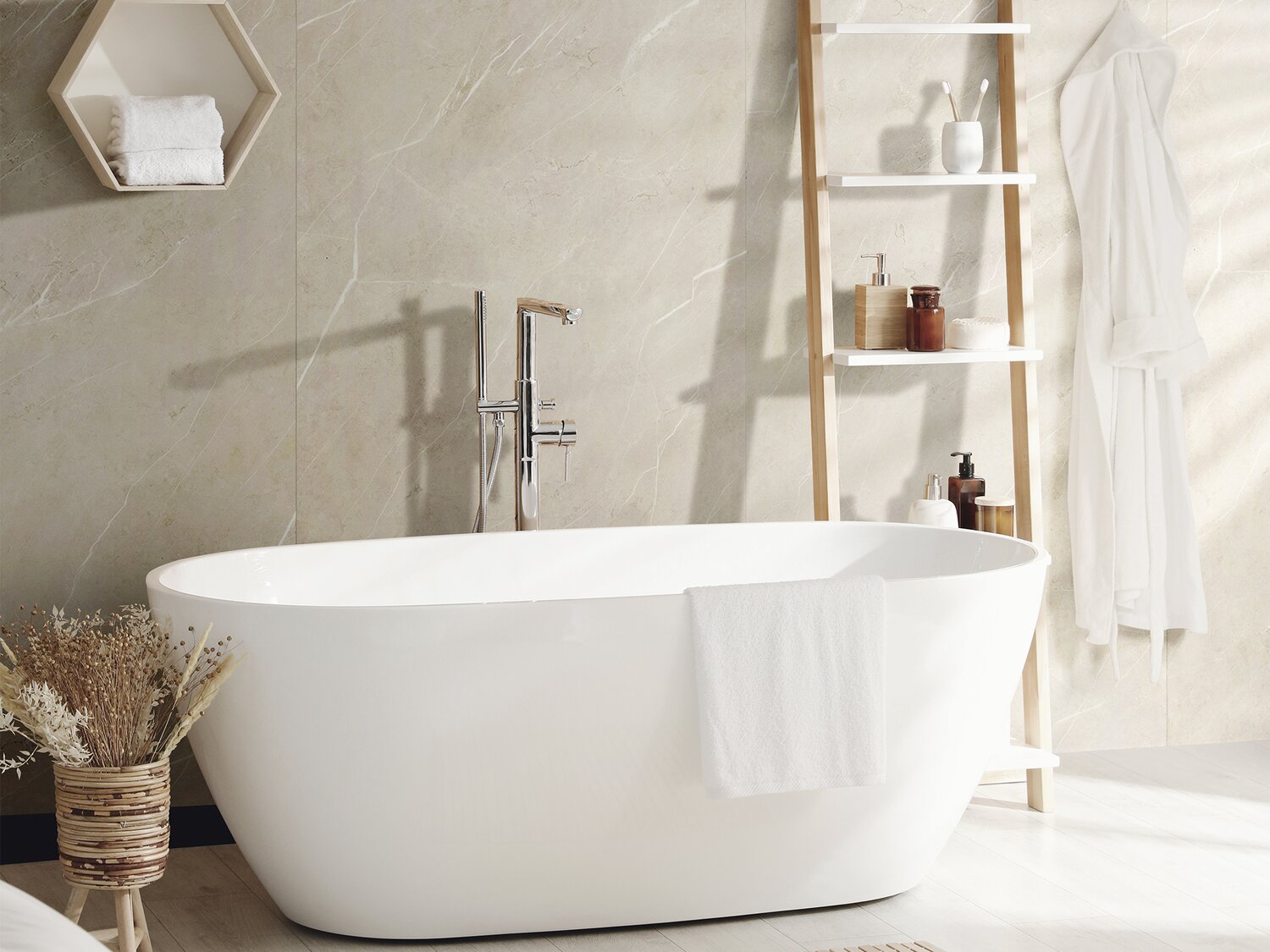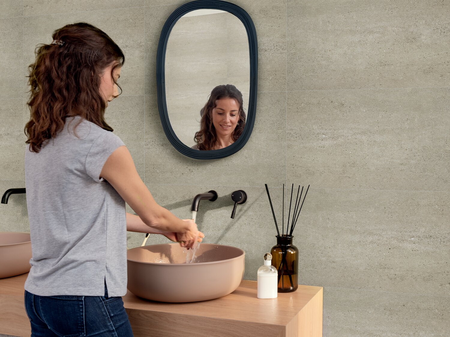 Sa conception non poreuse, son système d’assemblage par rainure et languette combiné à une pose collée confère à MURAL REVELA une résistance à l’eau lui permettant une installation en zone humide y compris les douches.
