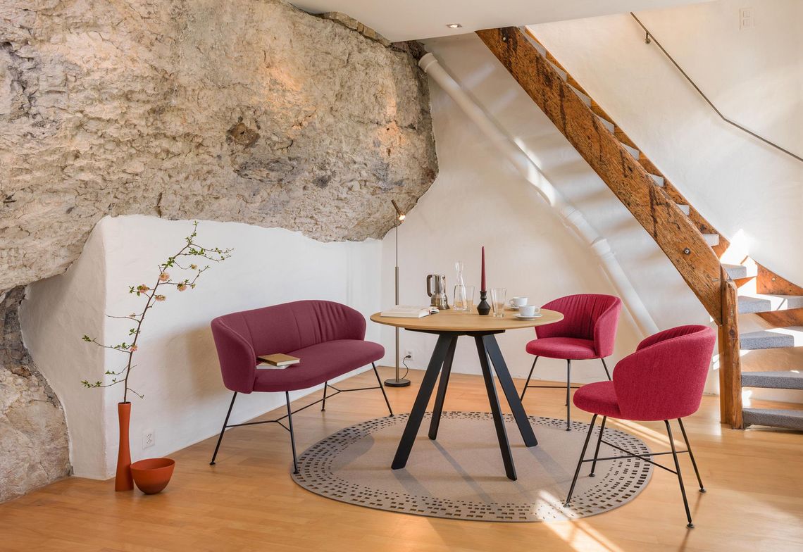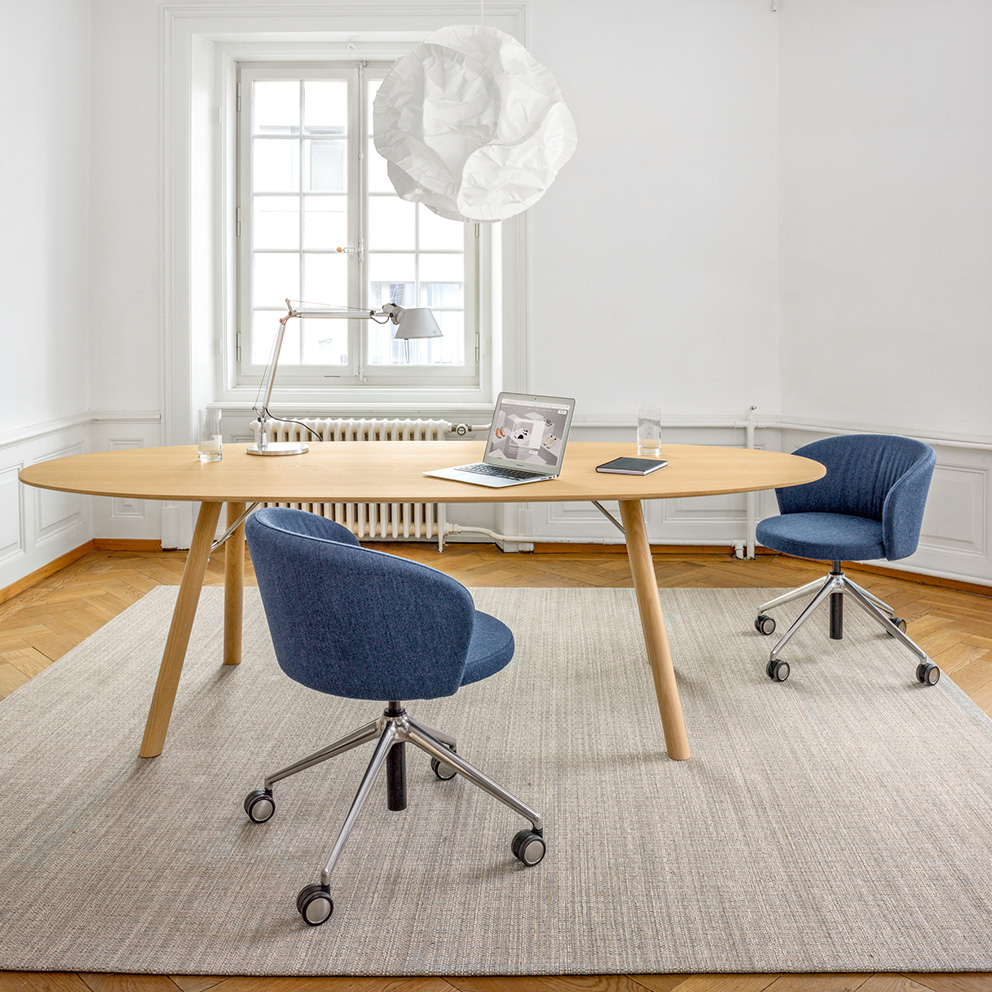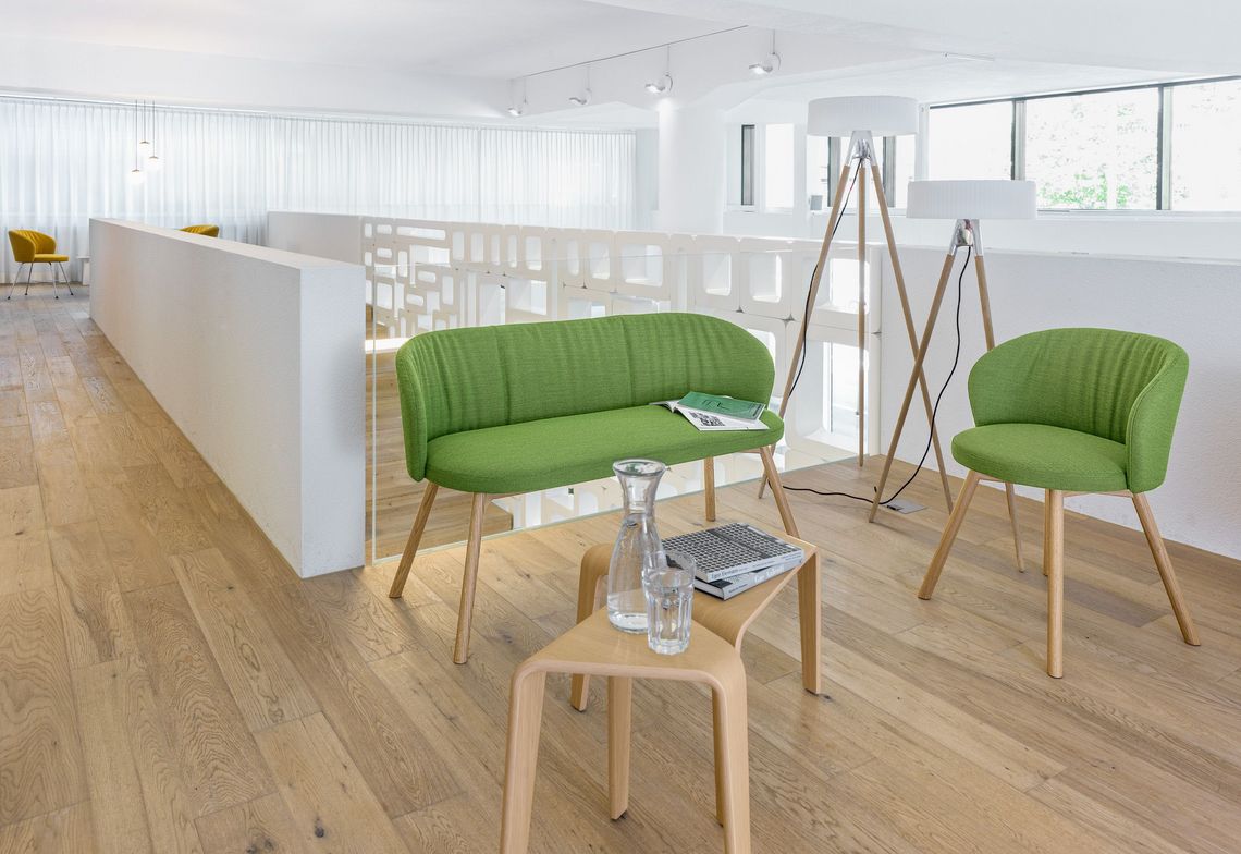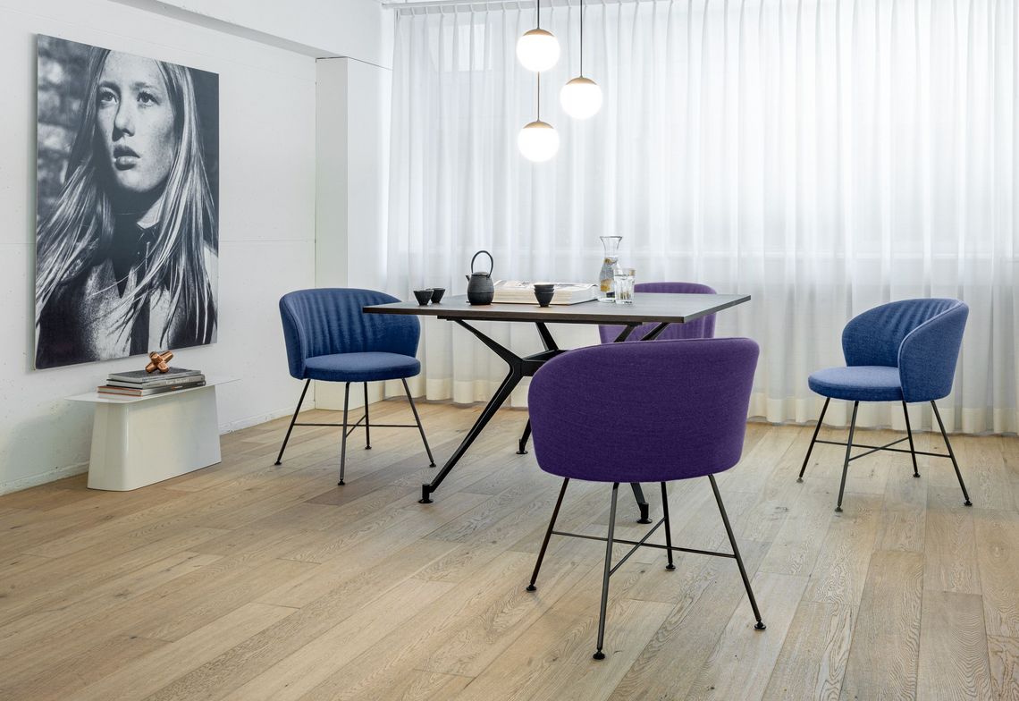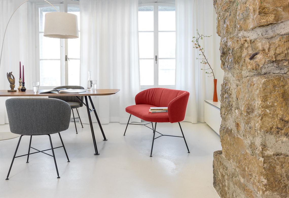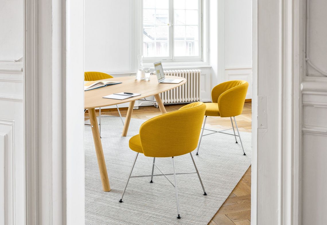 Le dossier enveloppant de Biala procure un sentiment de bien-être et son rembourrage moelleux fait penser à celui d’un fauteuil club. Cette gamme de chaises dispose de nombreuses variantes de piétement et peut être placée aussi bien au bureau que dans la sphère privée. Le rembourrage de l'assise et du dossier peut se décliner en un seul coloris, en deux coloris distincts ou revêtu de matériaux différents. Biala est également disponible en version biplace. Elle offre un espace confortable pour deux personnes malgré un faible encombrement au sol et peut être combinée avec des chaises individuelles de manière à former des ensembles attrayants.