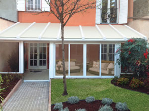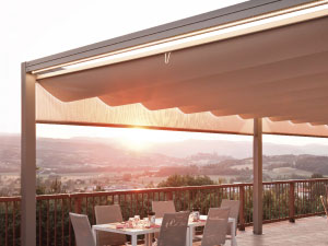 Le produit Toile pour pergola Onda-up du fabricant Giulio Barbieri classé dans la catégorie Menuiseries extérieures > Vérandas - bow windows - marquises - pergola > Auvents - marquises - pergola est référencé dans la Matériauthèque digitale Materiaux.archi.