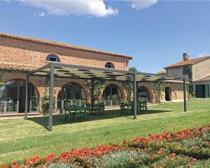 Le produit Tonnelle de jardin Kube du fabricant Giulio Barbieri classé dans la catégorie Menuiseries extérieures > Vérandas - bow windows - marquises - pergola > Auvents - marquises - pergola est référencé dans la Matériauthèque digitale Materiaux.archi.
