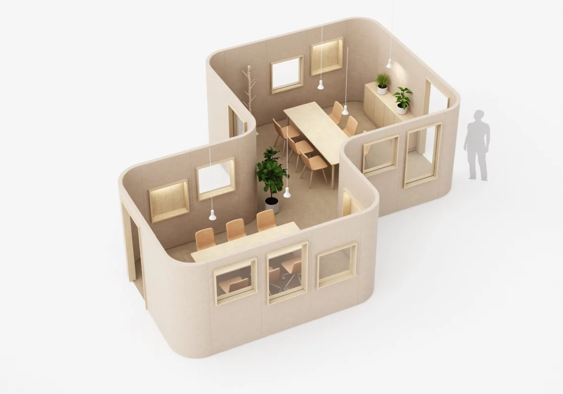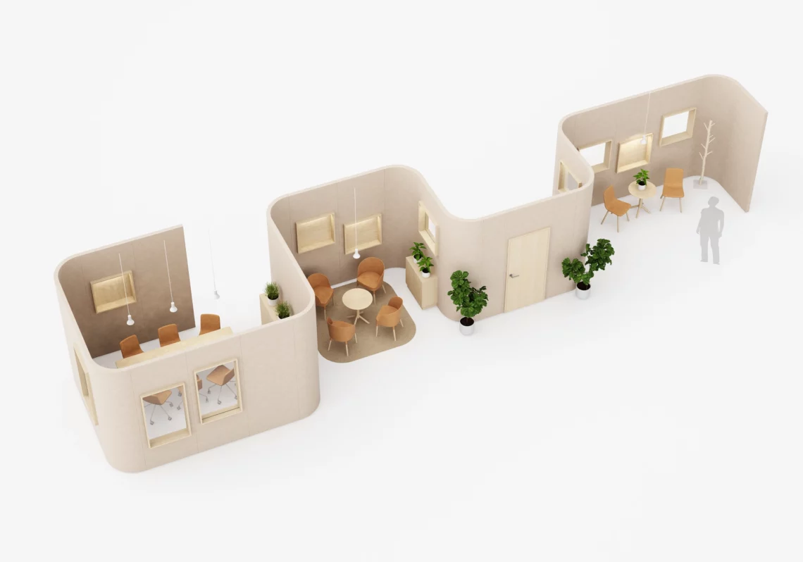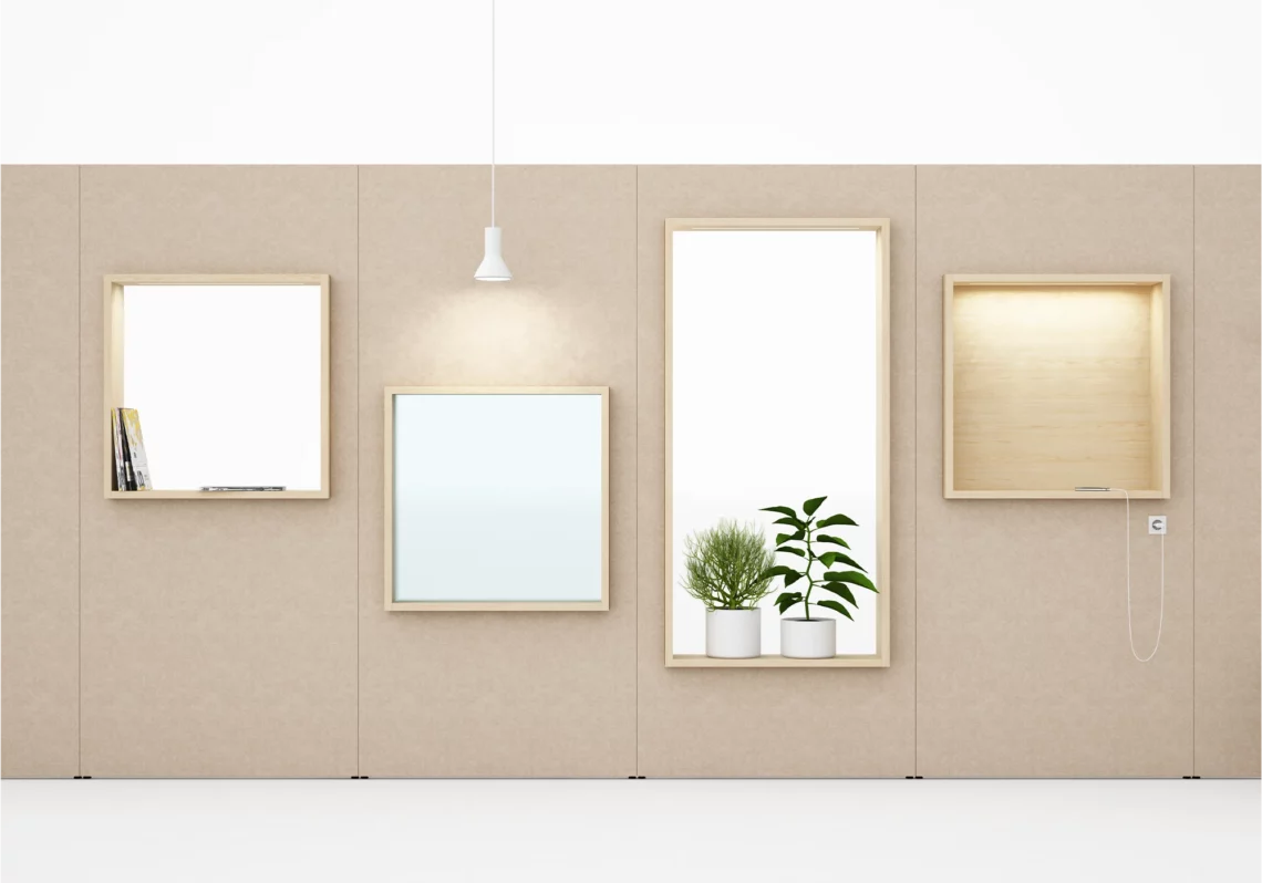 Les cloisons Buildup sont un système de murs recouverts de tissu offrant la même haute qualité et le même confort acoustique qui font la renommée de Glimakra en Suède. Le système peut être varié dans des combinaisons infinies avec différents coins, connecteurs, accessoires et couleurs. Avec Buildup, des paysages sonores silencieux peuvent être créés avec des pièces ouvertes ou fermées, des pavillons créatifs ou des murs autoportants. Les murs peuvent être équipés de portes ainsi que de niches lumineuses et de fenêtres qui peuvent être placées de manière ordonnée ou plus ludique si vous le souhaitez. Les fenêtres peuvent être disponibles avec du verre clair ou dépoli ou complètement ouvertes où l'étagère peut être utilisée pour le stockage ou l'exposition d'objets et de plantes.