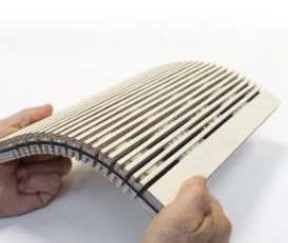 DUKTA flexible wood peut être fabriqué à partir de différents matériaux, comme MDF (coloré), éventuellement avec un placage ou une surface laquée, contreplaqué multiplis bouleau, bambou, bois massif multiplis etc. De plus, la variation des rainures et de la distance entre les rainures est possible. Un certain nombre de variantes sont présentées dans les projets montrés.