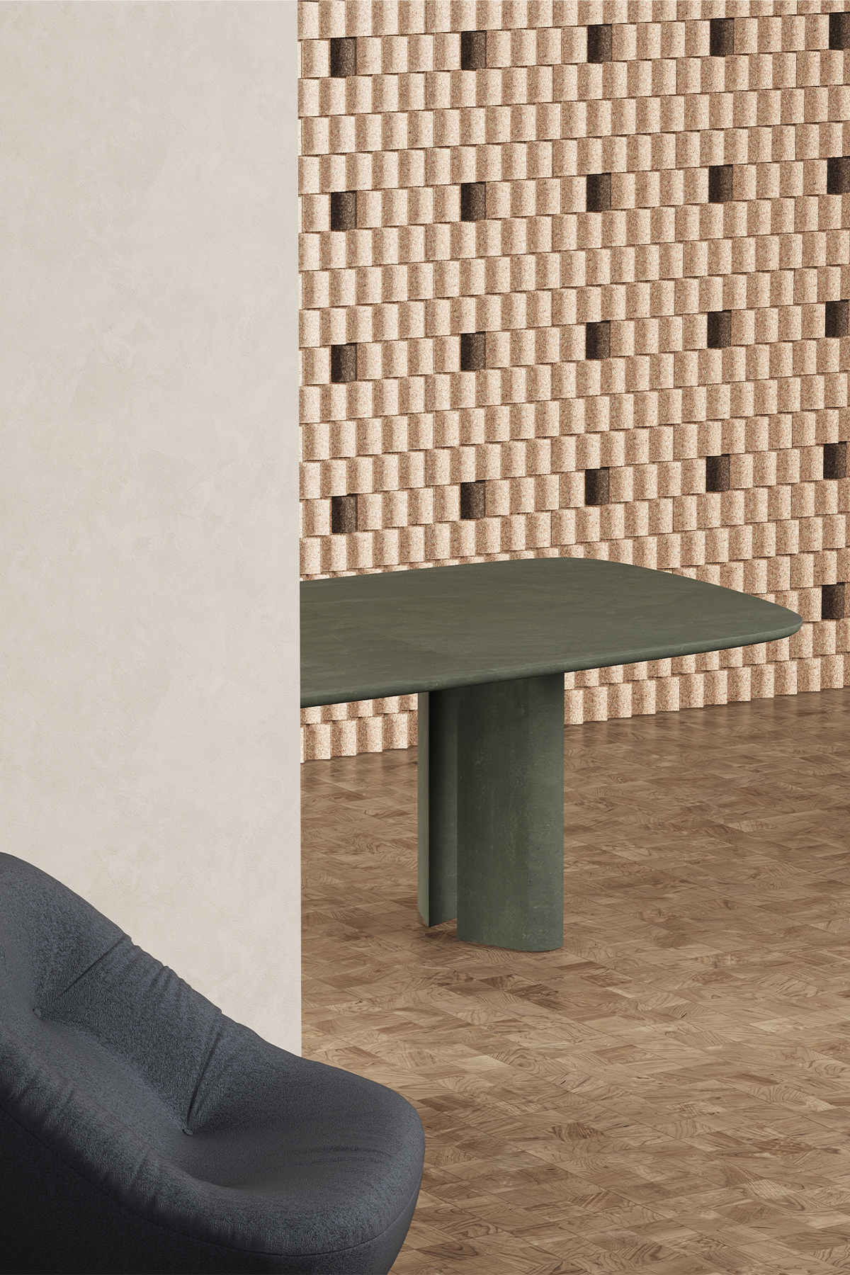 Le concept est d'offrir la possibilité de créer un mur acoustique avec une réelle présence et profondeur. Chaque pièce est inspirée des recherches graphiques et architecturales menées historiquement sur les briques. L'idée est de faire entrer l'extérieur en combinant le rythme et la symétrie de l'architecture avec des éléments naturels et durables, dans n'importe quel espace de vie ou de travail.