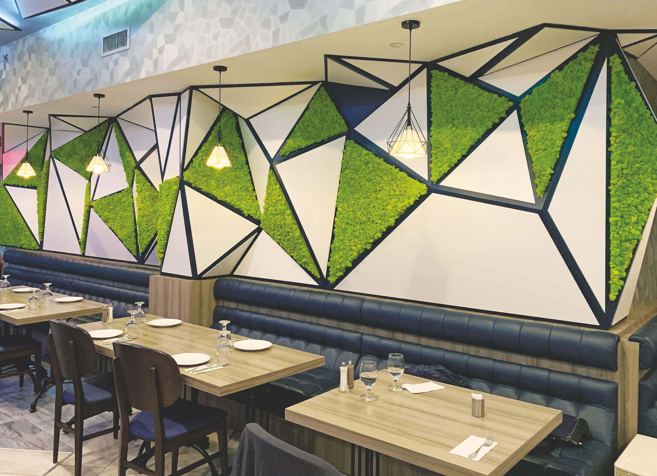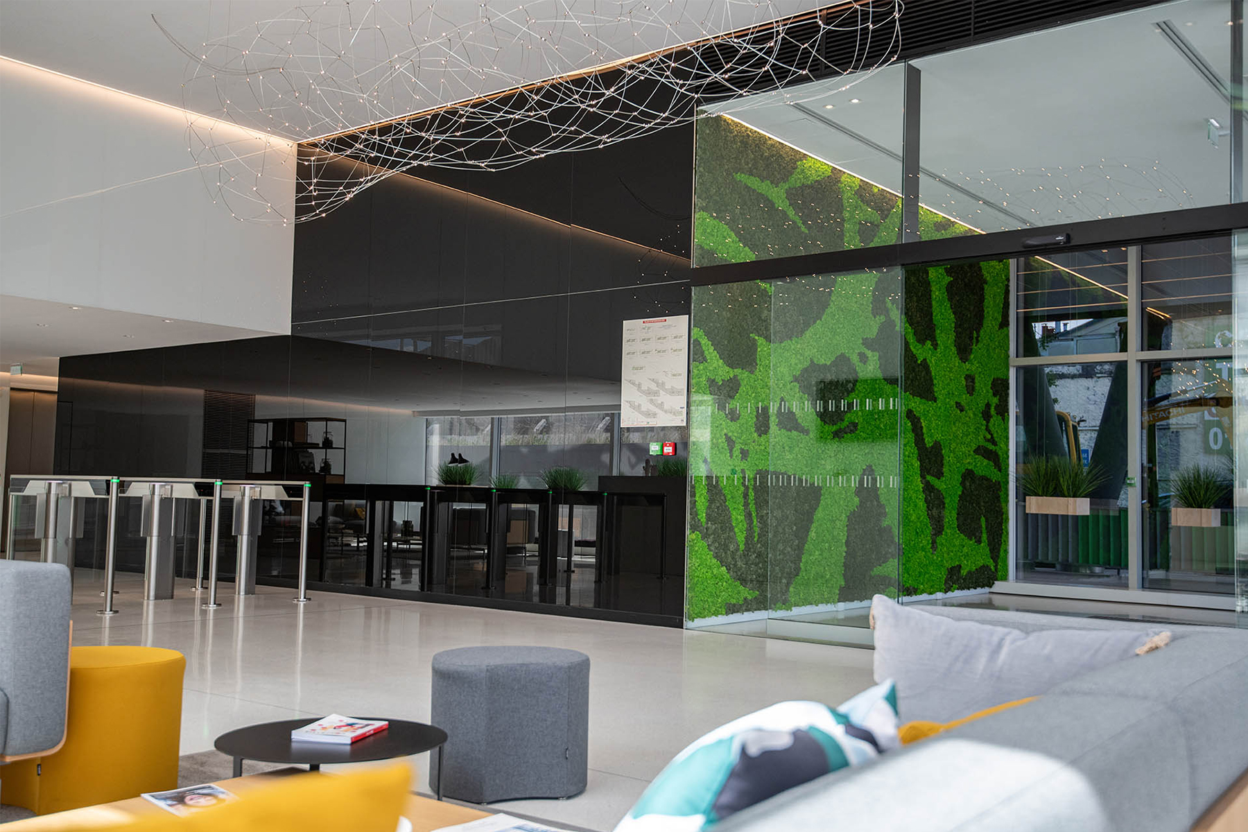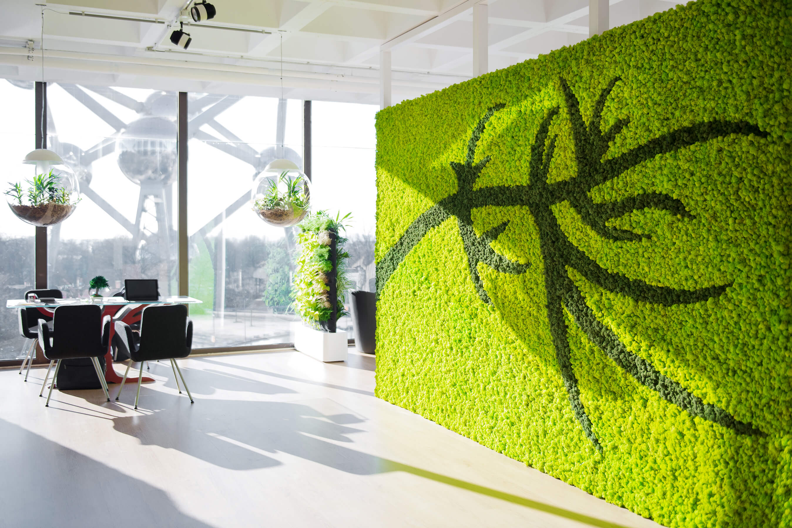 La forme unique, les différentes couleurs et les propriétés acoustiques du lichen stabilisé offrent des possibilités infinies en matière de design intérieur.