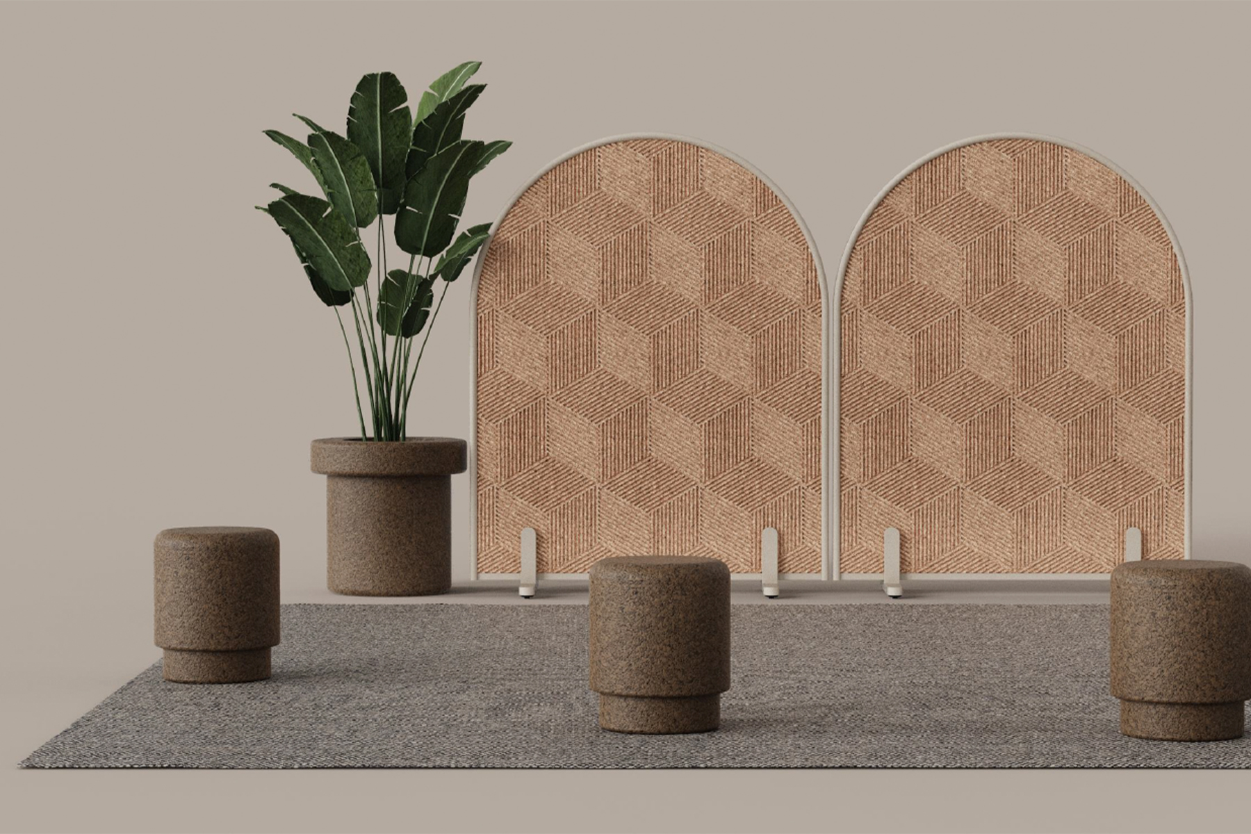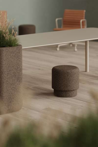 Pouf d’assise en liège expansé, 100% naturel et acoustique.