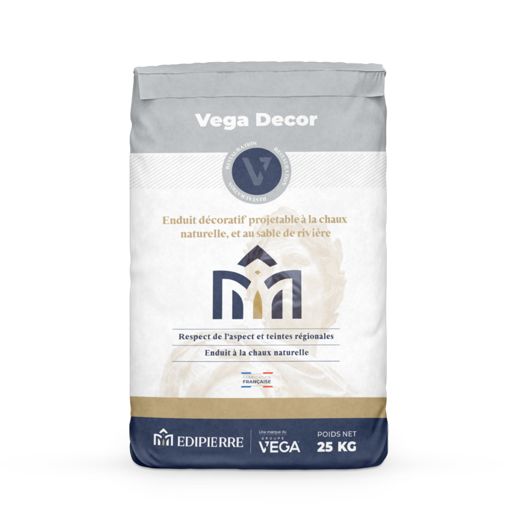 Le produit Vega Decor - Enduit décoratif du fabricant Groupe VEGA classé dans la catégorie Gros œuvre - Maçonnerie - Structure > Autre matériaux et accessoires de gros œuvre > Bétons et mortiers prêt à l'emploi est référencé dans la Matériauthèque digitale Materiaux.archi.