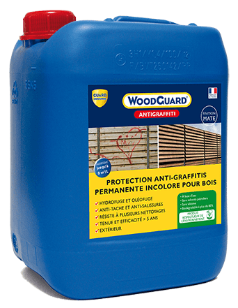 Le produit WoodGuard® AntiGraffiti du fabricant Guard Industrie classé dans la catégorie Gros œuvre - Maçonnerie - Structure > Autre matériaux et accessoires de gros œuvre > Produits de protection (antigraffiti, fongicide, hydrofuge, insecticide) est référencé dans la Matériauthèque digitale Materiaux.archi.