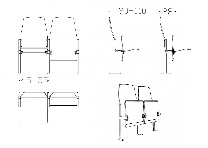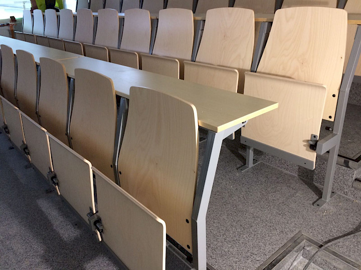 Edu auditorium seats have molded plywood seat and back. Edu takes up less than 30 cm of depth and so it is especially suitable for smaller spaces.
