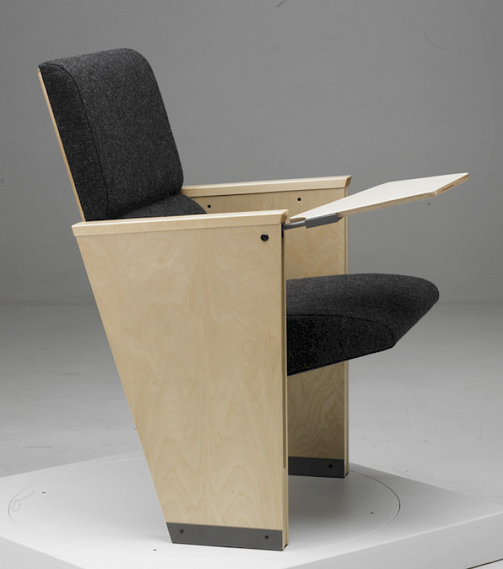 Odeon is a seat designed by Jouko Järvisalo. It has good ergonomics and can accommodate a writing top inside the armrests.