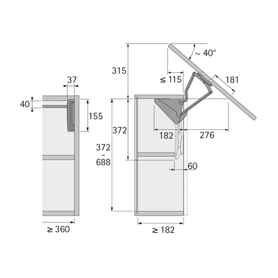 Ferrure pivotante relevable Lift Advanced HS, 372 - 688 de Hettich