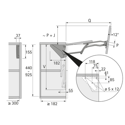 Ferrure relevante pliante Lift Advanced HF, 440 - 550 de Hettich