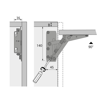 Le produit Lift, 80 - 220 N, 4,6 kg, 90° du fabricant Hettich classé dans la catégorie Menuiserie intérieure > Quincaillerie - accessoires > Quincaillerie - ferrures - accessoires est référencé dans la Matériauthèque digitale Materiaux.archi.