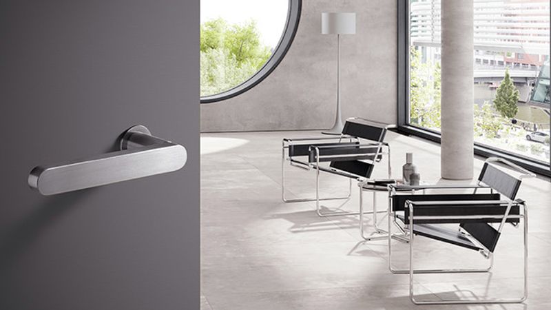 Avec mini, HEWI répond non seulement aux exigences les plus élevées en matière de design exceptionnel, mais aussi de qualité durable et de technique innovante. Le concept de montage qui se cache dans mini pose des jalons. La technique intelligente de mini permet une fixation rapide et résistante qui rend le perçage de points de fixation superflu. Au lieu de cela, mini est fixé au vantail de la porte par un palier à enfoncer. mini convient aux portes intérieures dans le domaine privé ou résidentiel ainsi que dans les bureaux et les bâtiments commerciaux (catégorie d'utilisation 4, DIN 1906/1 millions de cycles d'utilisation testés). La nouvelle fixation réduit la rosace à un minimum - elle a un diamètre de seulement 32 mm et une hauteur de seulement 3 mm. Grâce à la rosace minimisée, la poignée de porte se trouve au centre de la conception. mini est disponible pour certains modèles en polyamide brillant, en édition mate, en acier inoxydable et avec revêtement PVD.