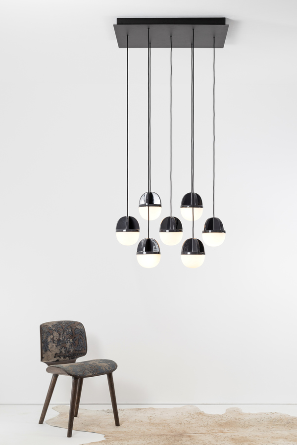 La suspension HALF & HALF explore les différentes façons dont nous pouvons percevoir un objet de jour comme de nuit, en particulier un objet lumineux. Le but de l’exploration est de donner vie à l’objet et de jouer avec la lumière même lorsque la lampe n’est pas allumée.