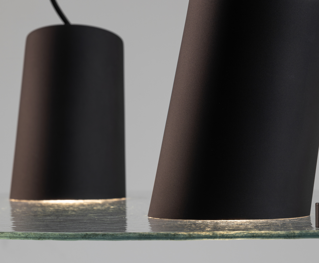 Les abat-jour sont en aluminium anodisé ou en laiton antique.