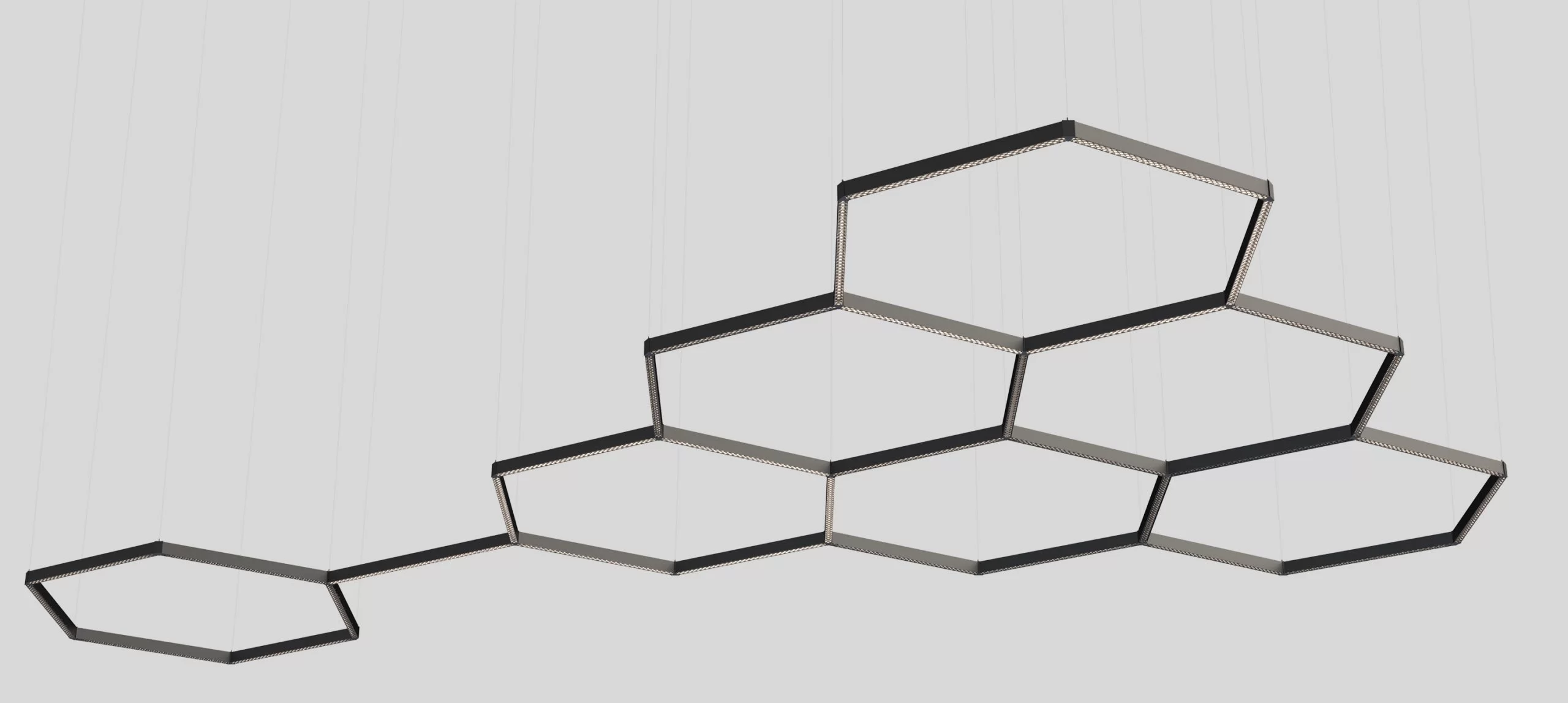 La structure en maille Neman peut être construite en joignant différentes formes et éléments dans un seul et même réseau. Elle vous permet de porter votre conception d'éclairage à un niveau supérieur où créativité et lumière s'unissent pour créer un véritable chef-d'œuvre d'éclairage.