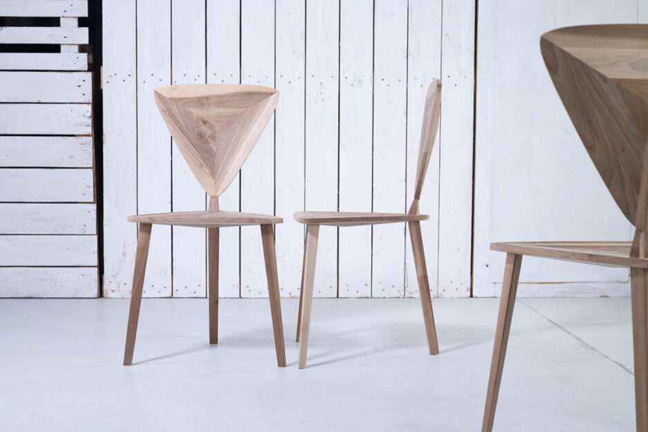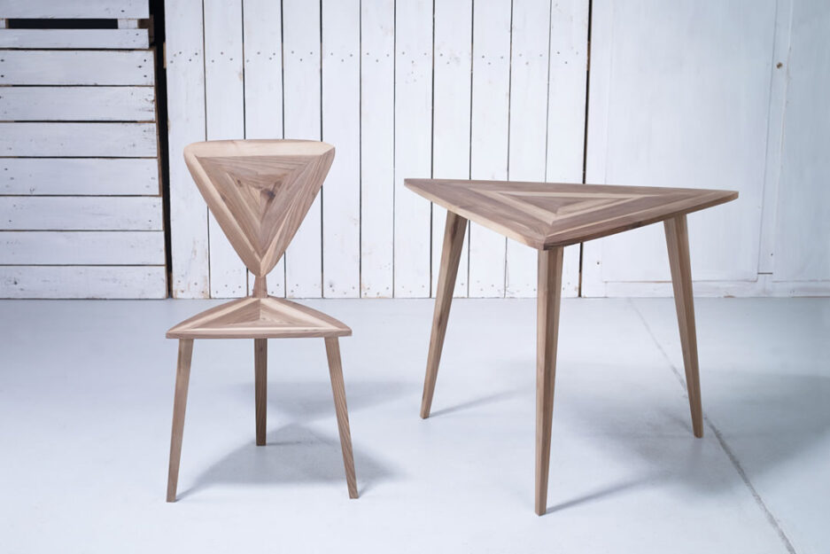 La forme d’un triangle arrondi est un élément de base qui traverse toutes les pièces de cette collection.