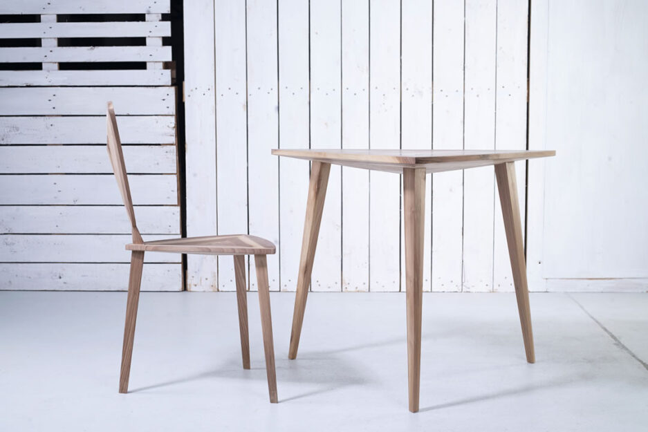 Pour augmenter l’électricité statique d’une chaise en bois massif pesant environ 5 kilogrammes, une sous-structure en acier est intégrée dans les pieds et la partie assise, ce qui lui confère une résistance et une ténacité extraordinaires. Le noyer européen s’intègre parfaitement à cette collection.