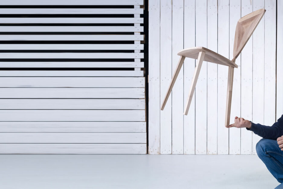 Le nom « furtif » vient de la conception de ces chaises avec les surfaces inclinées dominantes et des lignes très nettes et accentuées de séparation des surfaces qui font des pièces d’assise et de dossier sur la chaise. Une dynamique supplémentaire ou l’effet d'« invisibilité » est donné par les trois surfaces de chaque triangle placées à un angle de 120 degrés, ainsi que par leur position légèrement inclinée vers le centre. Des pieds triangulaires positionnés de manière conique, sur tous les éléments, augmentent également la dynamique de chaque élément de cette collection.
