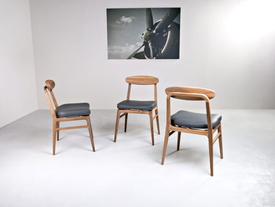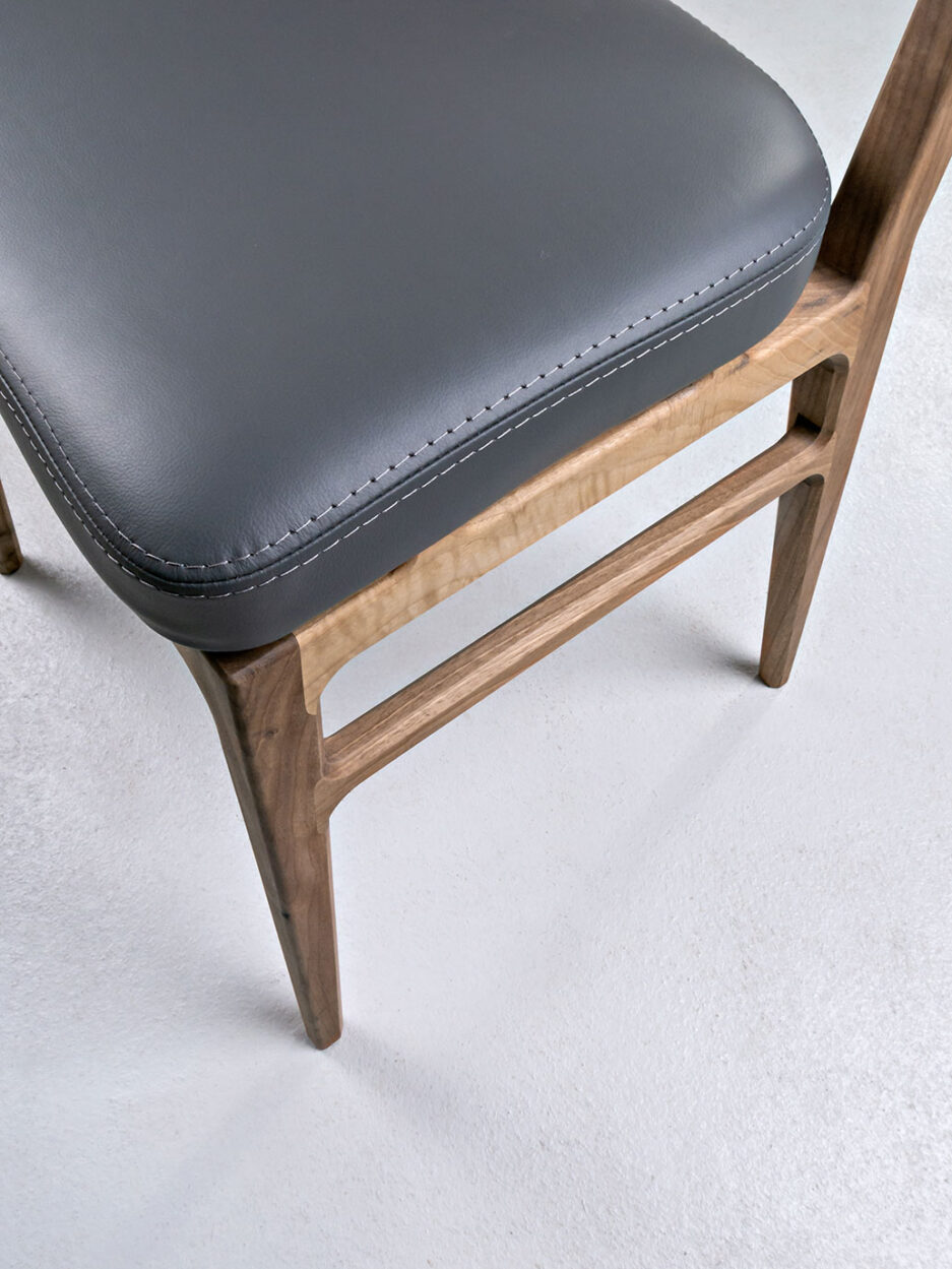 En choisissant du noyer européen pour la partie en bois ou une assise recouverte de cuir, on obtient une combinaison idéale d’élégance et de noblesse.